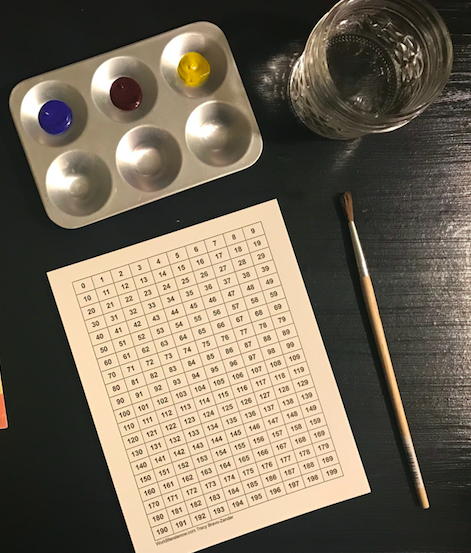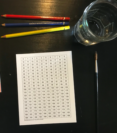 Including: 3 colors of watercolor paint prepared on palette, 1 paintbrush, 1 number chart printed on watercolor paper. This is the most classic of the three sets that accompanies the Visual Math: Explore Number Patterns Using Colors! (Sold separately in printed and digital format) This option is great for exploring watercolor technique and practicing the concepts with more color and math repetition throughout the process.