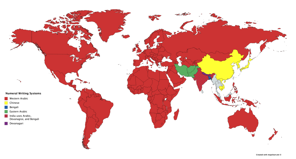 The choice of languages presented here is based on the most popularly used languages and numerical writing systems worldwide. The following map illustrates just that.